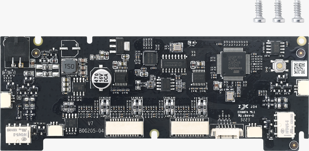 Bambu Lab AMS 2 Pro Mainboard е централната управляваща платка на AMS 2 Pro. Като най-важна електронна платка тя свързва всички функционални компоненти и координира техните процеси. Чрез множеството интегрирани конектори моторите, сензорите, системите за сушене и останалите модули се свързват надеждно чрез кабели. Платката обработва всички сигнали, управлява подаването на материал, администрира данните за филамента и гарантира хармоничната работа на цялата система.