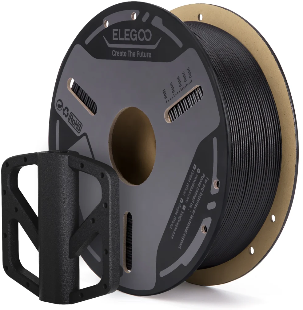 Elegoo PETG-CF съчетава универсалността на PETG със здравината на въглеродните влакна и осигурява изключително здрави, прецизни и дълготрайни резултати. Подсилването с въглеродни влакна дава висока якост и твърдост, така че частите остават устойчиви на огъване, напукване и деформации под товар.