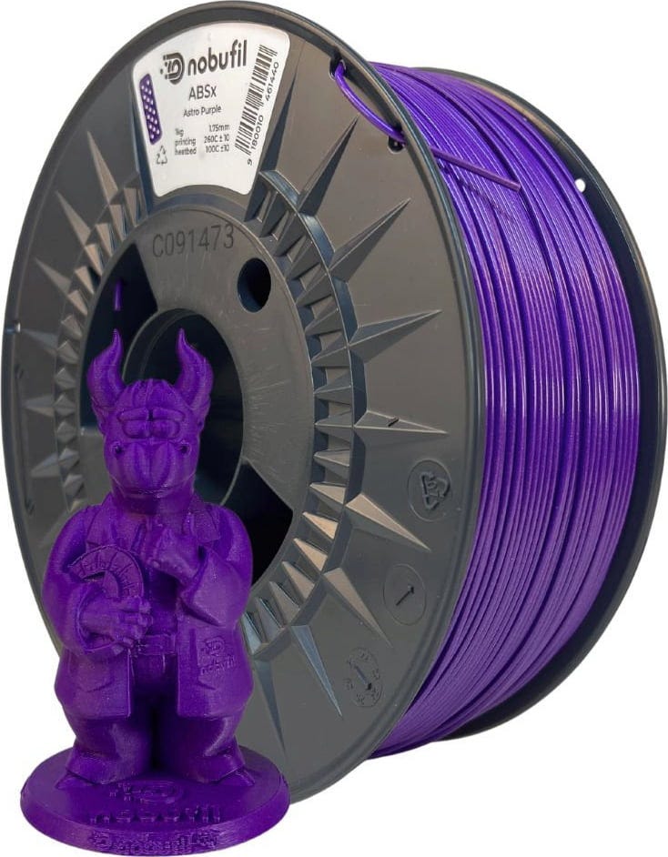 ABSx на Nobufil, изработен от рециклирани пластмаси, които се получават като производствен отпадък при промишлена обработка. В сравнение с конвенционалните ABS нишки, ABSx се характеризира с по-малко деформации и по-малко миризми.