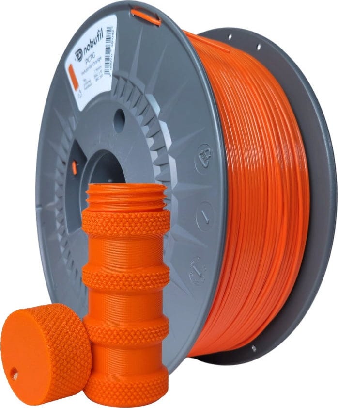 PCTG от Nobufil е филамент, направен от рециклирана пластмаса, която възниква като производствен отпадък при промишлена обработка. В сравнение с PETG филаментите, този полимер се характеризира с по-висока устойчивост на удар, което го прави подходящ за производство на механично натоварени компоненти.