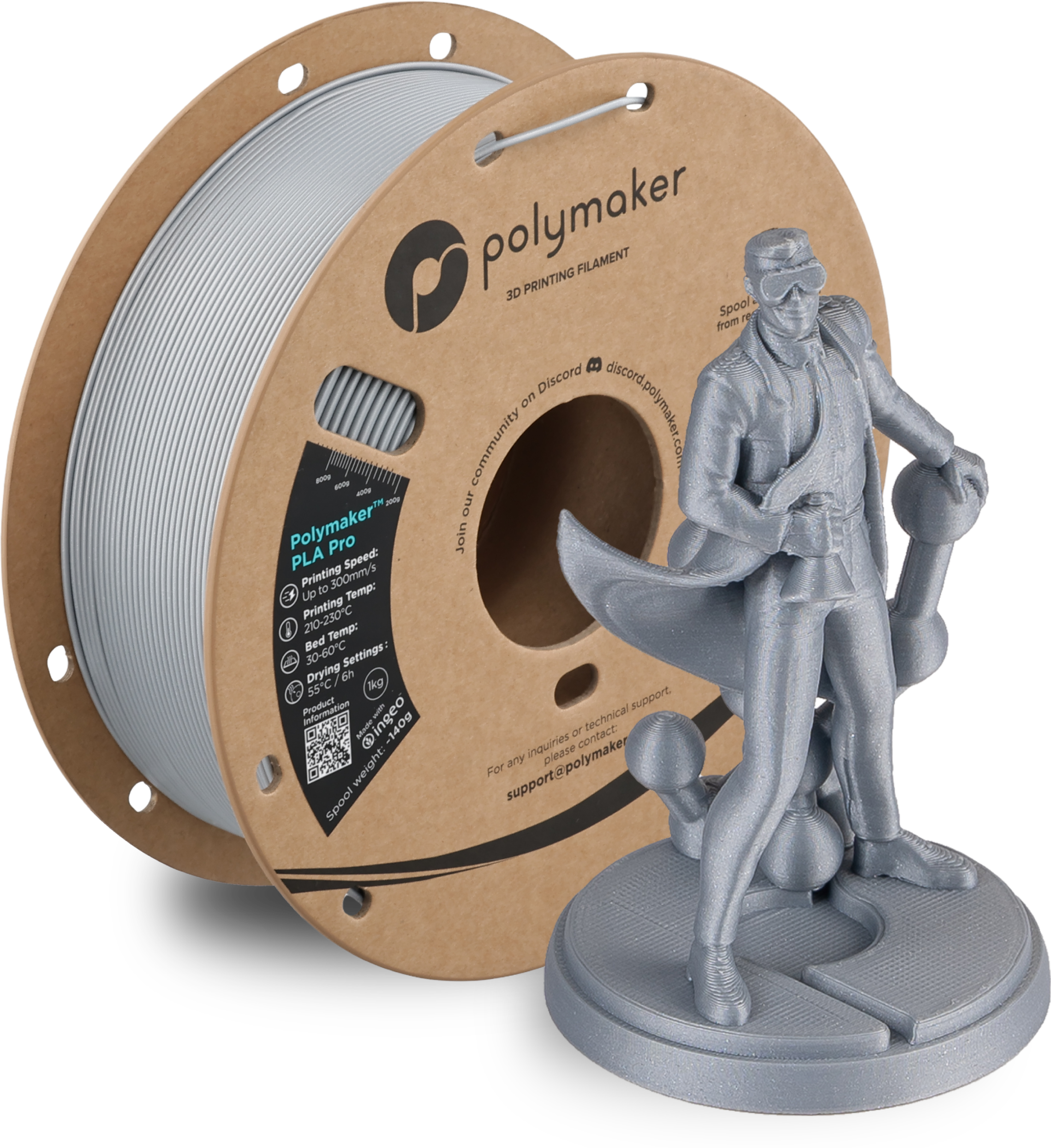 Независимо дали сте начинаещ, maker или професионален потребител: благодарение на отличната адхезия между слоевете, прецизното възпроизвеждане на детайли и широката съвместимост на материала, Polymaker™ PLA Pro е надежден избор за всеки, който търси универсален и високоефективен PLA филамент за 3D печат.
