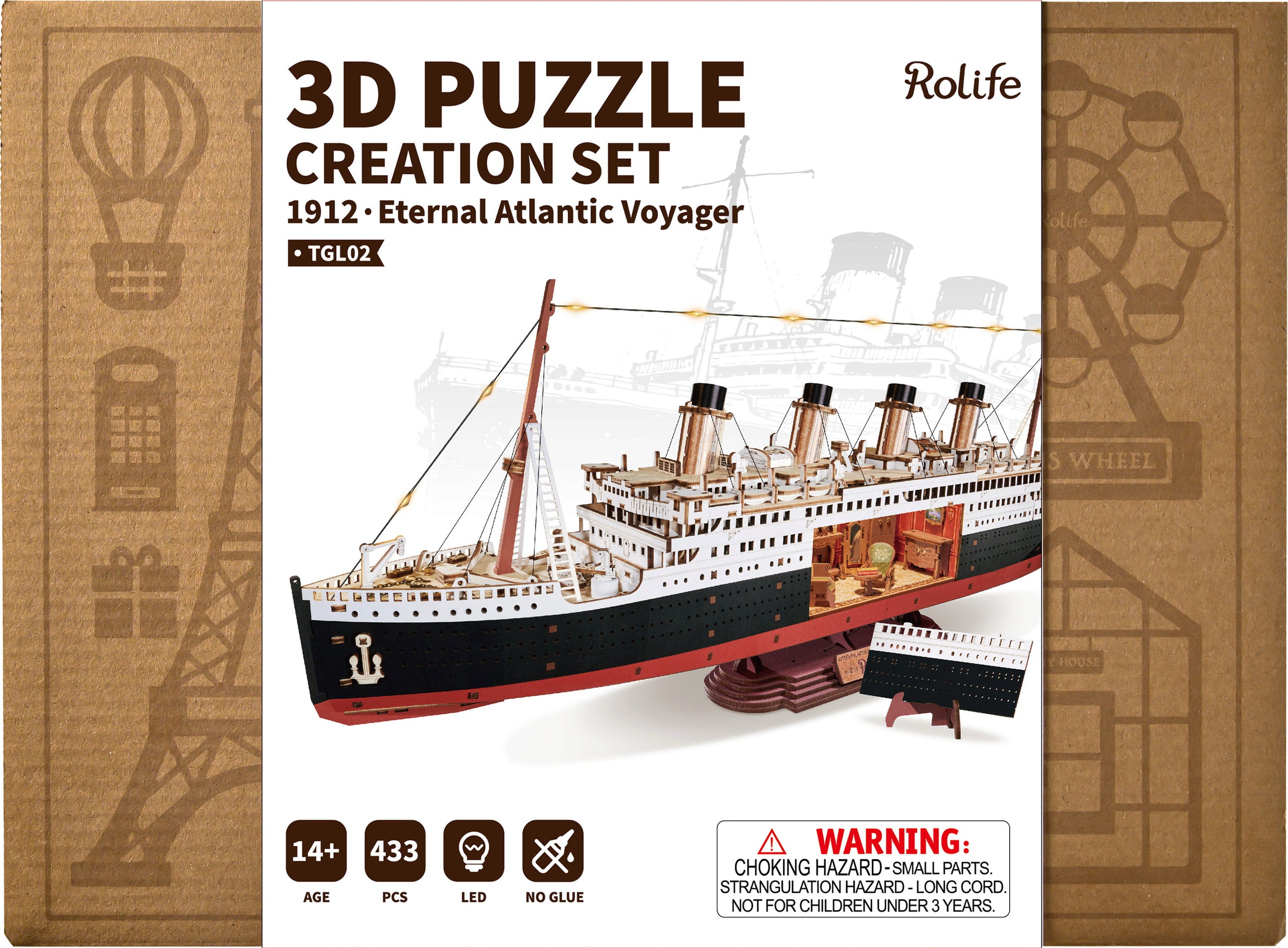 Някои кораби са повече от просто транспортно средство. ROKR 1912 – Eternal Atlantic Voyager е символ на елегантност, техника и непоколебима вяра в прогреса. С този детайлен 3D дървен пъзел внасяте у дома величествен океански лайнер – вдъхновен от големите атлантически параходи от началото на XX век.