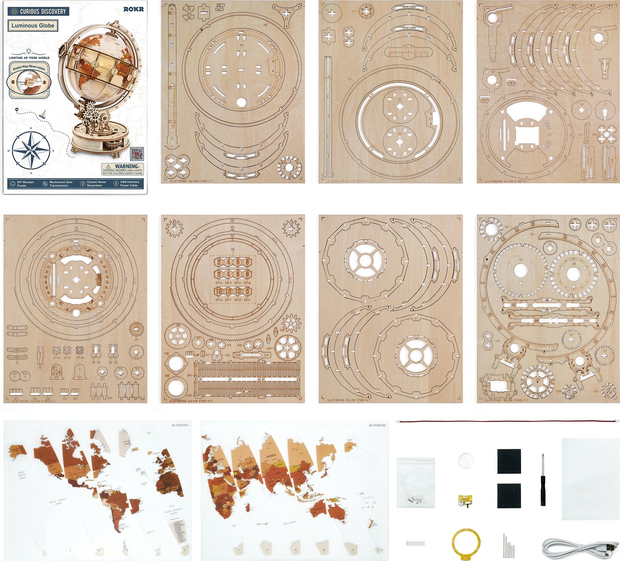 Понякога е достатъчен само един поглед, за да усетите жажда за пътешествия. ROKR Luminous Globe е въртящ се дървен глобус, който не само показва държави, но и разказва истории. По време на сглобяването, стъпка по стъпка се ражда малък свят – носен от зъбни колела, обграден от гравюри и пронизан от меко сияние. Щом глобусът е готов, започва тихата му магия: той се върти, свети отвътре и ви кани да гледате на местата по нов начин – без екран, в собственото ви темпо.
