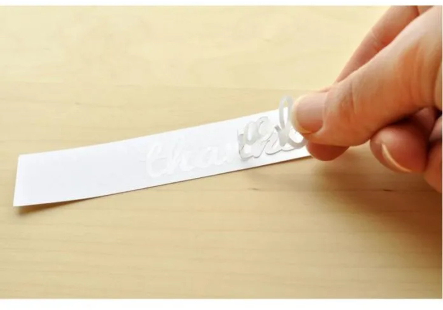 Първо изрежете желания мотив със своята Silhouette режеща машина. След това отстранете долния защитен слой и поставете изрязания дизайн върху повърхността на проекта. Накрая премахнете горния защитен слой, за да откриете лепящата повърхност, готова за декоративните материали.