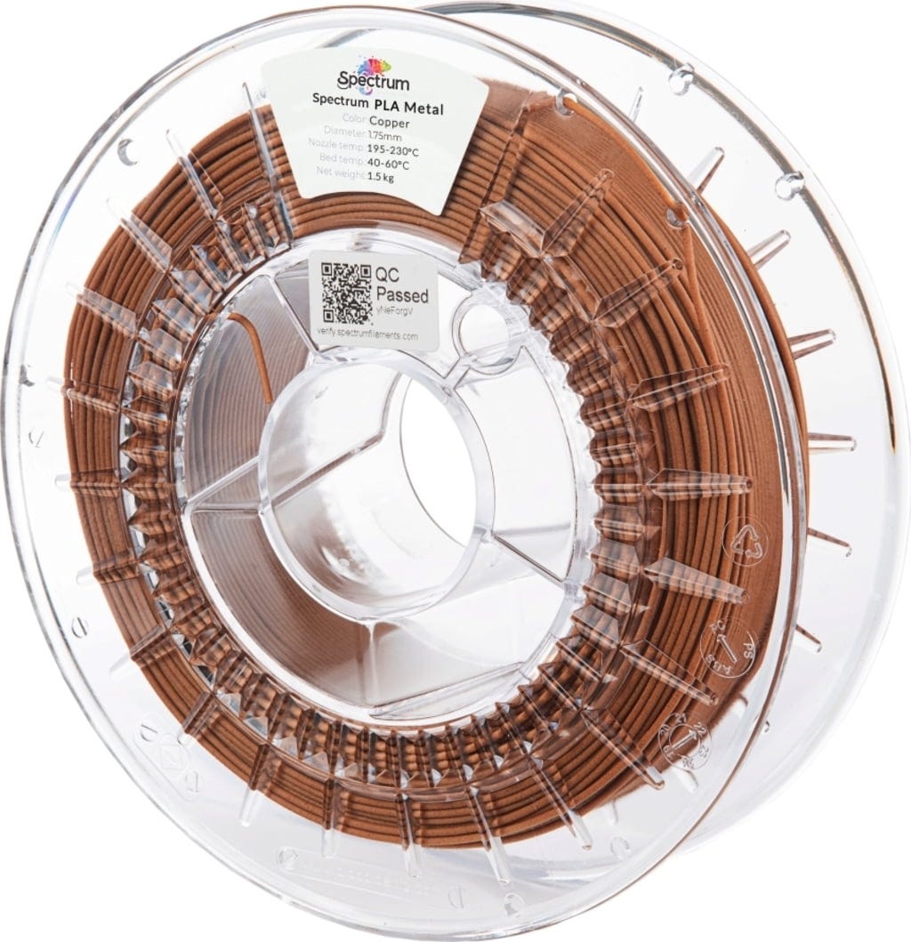 Със Spectrum PLA Metal Copper вие получавате най-доброто от двата свята: лесната възможност за печат на PLA, както и впечатляващата естетика и усещане за истинска мед! Благодарение на високото съдържание на меден прах, вашите отпечатъци ще имат вид, тегло и характерна хладна повърхност на метал.