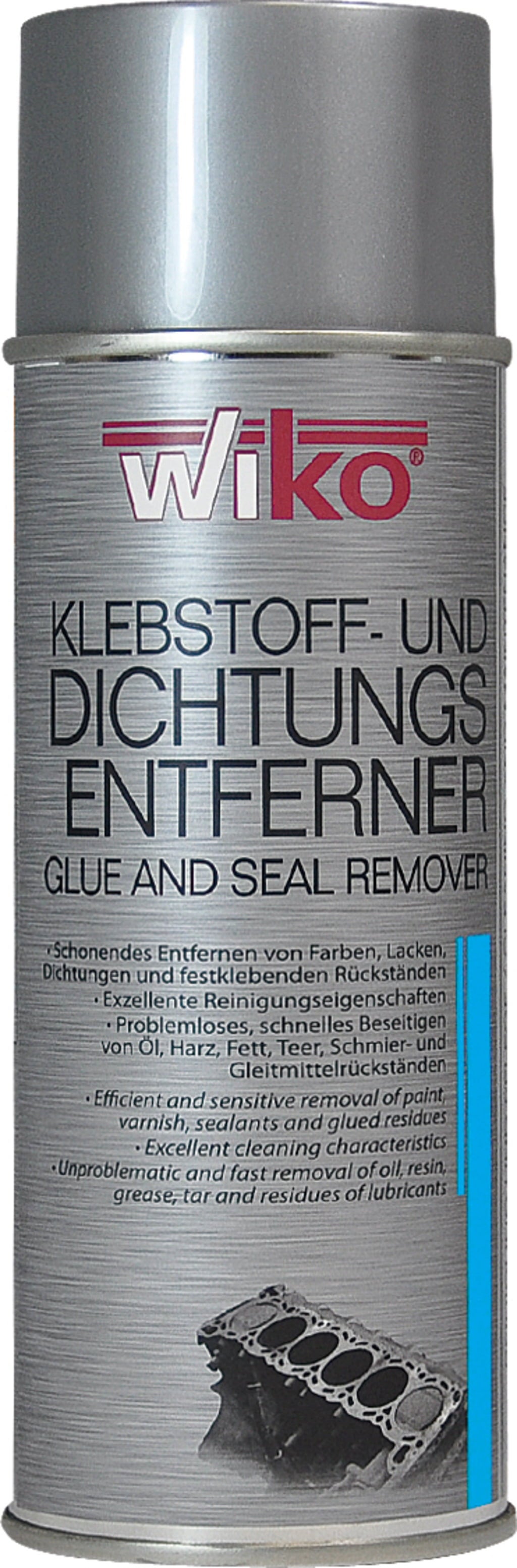WIKO спрей за премахване на лепила и уплътнители е високоефективен аерозол, разработен за бързо и безследно отстраняване на лепила и уплътнители, остатъци от боя и лак, както и разнообразни упорити замърсявания. Специалната формула позволява ефективно отделяне дори върху вертикални повърхности и значително намалява нуждата от механична обработка.